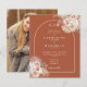 Belas aquarelas florais de grama pampas com um arco elegante emoldurando os detalhes da celebração do seu casamento especial e iniciais do monograma em tipografia estilosa sobre um fundo de terracota e sua foto especial no verso deste convite de casamento econômico e elegante. Criado por Thisisnotme©