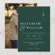 Este convite de casamento com monograma minimalista em verde esmeralda pode ser personalizado com suas informações em tipografia moderna e foto especial no verso. Criado por Thisisnotme©