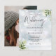 Este convite de casamento de inverno com folhas de verdejante botânico elegante e orçamento acessível pode ser personalizado com suas informações em tipografia sofisticada e sua foto especial no verso. Criado por Thisisnotme©