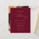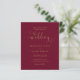 Este convite de casamento econômico e elegante pode ser personalizado com os detalhes da sua celebração definidos em tipografia dourada sofisticada em um fundo borgonha e dourado com a foto escolhida no verso. Concebido por Thisisnotme©