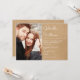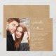Convite de casamento com script moderno rústico kraft com sua foto especial e detalhes da celebração em um fundo kraft rústico. Criado por Thisisnotme©