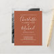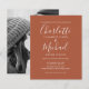 Convite de casamento terracota econômico e elegante com sua foto, nomes em estilo de assinatura, pode ser personalizado com os detalhes do seu casamento em letras modernas e sofisticadas. Concebido por Thisisnotme©