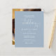 Este convite de casamento econômico e elegante pode ser personalizado com os detalhes da sua celebração em tipografia sofisticada sobre um fundo azul poeirento e sua foto especial no verso. Criado por Thisisnotme©