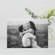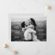Convide seus convidados para celebrar com você no grande dia e mostre aquela incrível fotografia de noivado de uma vez com este convite de casamento em layout horizontal. O texto branco se destaca contra fotografias mais claras, mas pode ser alterado para preto usando o personalizador. Um simples verso da cor de sua escolha completa o visual limpo e elegante deste convite.