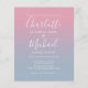 Com a sua foto, nomes em estilo de assinatura, este convite de casamento elegante e econômico em tom rosa e azul poeira ombre pode ser personalizado com suas informações em letras sofisticadas. Concebido por Thisisnotme©