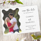 Um anúncio de convite de casamento com foto estilosa apresentando sua foto em uma moldura ondulada moderna e uma fonte manuscrita. Altere qualquer um dos textos para personalizar.