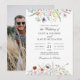 Mostre sua foto favorita ao lado de suaves flores silvestres em aquarela com este convite de casamento personalizado com foto. As flores brilhantes do prado adicionam um charme quente e alegre, enquanto o layout da foto mantém seu convite pessoal e único. Perfeito para casamentos românticos ao ar livre, rústicos, de jardim ou boho. Texto e foto totalmente personalizáveis para uma introdução elegante e sincera ao seu dia de casamento.