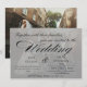 Este lindo design apresenta a foto de sua escolha na frente e no verso, mas a imagem da frente tem uma sobreposição suave e branca que faz o texto preto se destacar e garante que todo o seu texto seja super legível! O texto em caligrafia combinado com texto moderno é uma maneira elegante de mostrar aos seus convidados seu estilo e uma ótima maneira de mostrar os detalhes do seu casamento em um lugar memorável que também pode ser um item precioso para as pessoas que você convida.