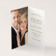 Convite de casamento dobrado com folha de prata elegante e moderna, com coração de corda dourada e foto.