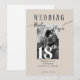 Crie uma primeira impressão atemporal com este convite de casamento moderno com foto, apresentando um fundo bege limpo, tipografia serif elegante e letras em roteiro romântico. Projetado para casais que amam uma estética minimalista, porém editorial, este convite destaca lindamente a foto do seu noivado, mantendo o layout sofisticado e refinado.