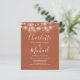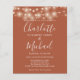 Com belas luzes de cordão e sua foto e nomes no estilo signature, este convite de casamento de terracota econômico e elegante pode ser personalizado com suas informações em letras elegantes. Criado por Thisisnotme©