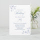 Este convite de casamento botânico azul empoeirado e elegante apresenta vegetação suave em aquarela e caligrafia refinada para um visual atemporal e romântico. Projetado com um layout limpo e minimalista e delicados acentos botânicos, é perfeito para casamentos clássicos, modernos ou inspirados em jardins.