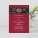 Convite de Casamento de Renda Vermelha Borgonha e Preta. Design elegante de laço de pérola. Por favor, note que todas as imagens planas! Elas não têm laços reais!