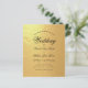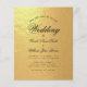 Um convite de casamento econômico com texto preto em fundo de folha de ouro falso. A palavra Casamento e os nomes são escritos em uma letra cursiva elegante.