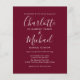 Com nomes de estilo exclusivo, este convite de casamento burgundy econômico e elegante pode ser personalizado com suas informações em letras elegantes. Projetado por Thisisnotme©