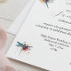 Este convite de casamento encantador é lindamente decorado com libélulas coloridas em aquarela, simbolizando amor, mudança e novos começos. Pintadas delicadamente em tons cintilantes de azul, roxo, verde e amarelo, as libélulas adejam graciosamente pelo design, criando uma sensação caprichosa e romântica. Os nomes do casal são exibidos em uma fonte elegante emeline e garamond roman, garantindo uma aparência refinada e convidativa. Este convite define o tom perfeito para uma celebração mágica e inesquecível.