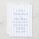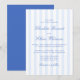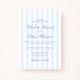 Este convite de casamento apresenta um padrão de listras verticais suaves em azul e branco, combinado com uma tipografia elegante em letra cursiva. O design clássico de listras dá ao convite uma aparência atemporal e refinada, enquanto a paleta de cores azul claro o mantém fresco e moderno. A combinação de listras limpas e letras cursivas fluidas cria um estilo equilibrado que se sente ao mesmo tempo tradicional e moderno.