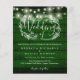 Com luzes de corda bonitas e uma guirlanda floral desenhada à mão, este convite de casamento de madeira rústica econômico e elegante pode ser personalizado com suas informações em letras elegantes sobre um fundo de painéis de madeira esmeralda. Desenhado por Thisisnotme©