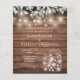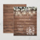 Um convite de casamento dentro do orçamento elegante, apresentando lindas luzes de corda, potes de pedra e folhas de salvia e lilás que caem sobre um fundo de madeira rústica. Criado por Thisisnotme
