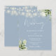 Este convite de casamento azul po elegante, apresentando lindas luzes de corda e folhagens florais, pode ser personalizado com suas informações em tipografia sofisticada com suas iniciais monograma no verso. Projetado por Thisisnotme©