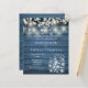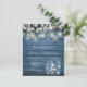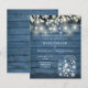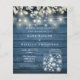 Um convite de casamento econômico e elegante com lindas luzes de corda, potes de vidro e folhas de salvia e lilás que caem sobre um fundo de madeira rústica azul. Criado por Thisisnotme