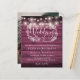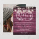 Com lindas luzes de corda e uma guirlanda floral desenhada à mão, este convite de casamento rústico econômico e elegante pode ser personalizado com suas informações em letras elegantes sobre um fundo de painéis de madeira vermelha burgundy e sua foto especial no verso. Criado por Thisisnotme
