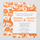 Convite de Casamento com Monograma Damask Laranja