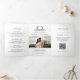 Este convite de casamento elegante de três dobras apresenta caligrafia refinada e tipografia moderna em um layout limpo e minimalista. O delicado monograma de crista botânica adiciona um toque romântico atemporal, mantendo o design geral sofisticado e chic. O formato de três dobras fornece espaço generoso para incluir detalhes da cerimônia, cronograma do casamento, informações do local, ícones e um código QR conveniente que leva ao site do casamento. Uma bela seção de fotos no verso adiciona um toque pessoal, tornando este design perfeito para celebrações modernas, clássicas ou formais. Elegante, prático e cuidadosamente projetado, este convite permite que os casais compartilhem todas as informações essenciais do casamento em uma única peça de papelaria sofisticada.