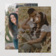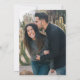 Convites de casamento modernos e sofisticados com a sua foto com uma sobreposição preta, uma borda delicada de linha branca na parte superior e inferior, suas iniciais, nomes em uma fonte de letra elegante e as informações do seu casamento. O verso tem outra foto para você substituir pela sua.