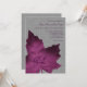 Um grande monograma sutil de folha de bordo roxa, em um fundo de linho ilustrado, decora este convite de casamento cinza. É mostrado no papel matte; no entanto, eu recomendo o peso e a textura do papel de linho, para melhorar a aparência.
