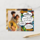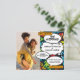 Um convite de casamento com orçamento de estilo retrô de quadrinhos pop art divertido, legal e moderno que coloca o wham, zap, pow em qualquer evento de celebração de casal super-herói. Adicione suas 2 fotos especiais na frente e atrás. Criado por Thisisnotme©