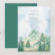 Este convite de casamento apresenta uma serena paisagem montanhosa em aquarela com céus azulados suaves, verdejante floresta e uma composição pacífica inspirada na natureza. O estilo pintado à mão cria uma sensação calma, romântica e atemporal, perfeita para casais que amam o ar livre e a beleza natural.