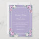 Este convite de casamento roxo-lavanda apresenta peônias, lavanda, formas geométricas e tipografia em água branca e roxa. Ideal para um casamento ao ar livre. Encontre itens correspondentes na Coleção de Casamento Floral Roxo Lavanda.