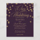 Convites de Casamento Elegantes com Purpurina Dourada e Confete Lilás.