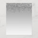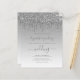 Um design moderno e sofisticado apresentando um fundo ombre cinza com uma borda superior de pingos de glitter prateado. A palavra "casamento" e os primeiros nomes do casal aparecem em letra cursiva minúscula com floreios decorativos no início e no final, com o texto restante em fonte sem serifa. O fundo ombre e a borda de pingos de glitter prateado são repetidos no verso. (Para manter os floreios, substitua apenas as letras, deixando os símbolos no lugar.)