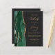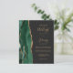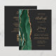 Economize no custo de impressão e envio de cartões RSVP separados com este convite de casamento econômico, moderno e elegante, tudo em um. A borda esquerda apresenta uma borda de ágata em aquarela esmeralda aparada com brilho falso dourado. O texto personalizável combina escrita à mão dourada, fontes copperplate e itálico em um fundo preto ardósia. O verso fornece espaço para detalhes do casamento em um fundo preto ardósia sólido, juntamente com um código QR que os convidados podem digitalizar para visitar seu site e responder. NOTA: Os envelopes não estão incluídos automaticamente com esses convites econômicos, então lembre-se de escolher a opção "envelopes brancos em branco"!