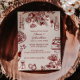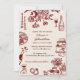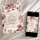 Convites de casamento vermelhos e creme caprichosos com rabiscos desenhados à mão são uma maneira encantadora e criativa de convidar os convidados para uma celebração repleta de amor, risadas e boa comida. Com arte de linha estilo rabisco em vermelho profundo em um fundo creme suave, este design divertido inclui rabiscos de arranjos florais, alianças, garrafas de champanhe, taças de vinho, bolo, velas e uma mesa de jantar - capturando perfeitamente o espírito de um casamento focado na recepção. As fontes manuscritas casuais mantêm o layout elegante, mas acessível, permitindo que todos os detalhes importantes do evento sejam destacados claramente. Ideal para casais que planejam uma celebração relaxada, mas refinada, com jantar e dança, este convite funciona lindamente para casamentos no jardim, recepções urbanas ou eventos estilo restaurante. Os elementos ilustrados adicionam uma qualidade única de livro de histórias que faz com que seu convite pareça pessoal e divertido, mantendo ainda um senso de elegância. Este design personalizável é perfeito para aqueles que desejam estabelecer um tom caloroso e festivo para o dia do casamento. Disponível como