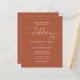 Este convite de casamento econômico e elegante pode ser personalizado com os detalhes da sua celebração definidos em tipografia sofisticada sobre um fundo de terracota. Criado por Thisisnotme©