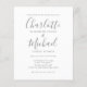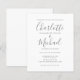 Com nomes no estilo de assinatura, este elegante convite de casamento cinza e branco pode ser personalizado com suas informações em letras cinzas elegantes. Criado por Thisisnotme©