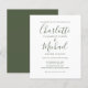 Com nomes com estilo de assinatura, este elegante convite de casamento verde oliva com orçamento reduzido pode ser personalizado com suas informações em letras elegantes. Desenhado por Thisisnotme
