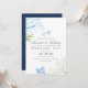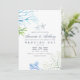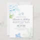 Convites de casamento de praia com tema de oceano azul-marinho e branco na moda, apresentando samambaias marinhas, algas e estrelas-do-mar, projetados para serem personalizados rápida e facilmente de acordo com os detalhes do seu evento.