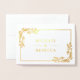 Convide seus hóspedes com este elegante convite de casamento dobrado, com um belo quadro floral de ouro falso no quadro floral de folha de dentro e ouro real com noiva e nomes de noivos no exterior. Basta adicionar os detalhes do seu evento neste modelo fácil de usar e enfeitar este cartão com a sua foto favorita para torná-lo um convite único.