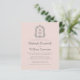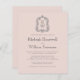 Este elegante design de convite de casamento inspirado em vintage apresenta um par de iniciais de um monograma de cinza de carvão em serifa aberta acima e abaixo de uma linha divisória e rodeado por uma crista botânica de arte de linha em um fundo cor-de-rosa pincelado. A parte traseira da placa está com um pincel sólido.