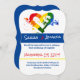Este convite temático de casal do mesmo sexo é perfeito para o casamento LGBT. Com um coração multicolorido grunge e cores vivas de azul, vermelho e amarelo em um fundo branco, este convite permite que você anuncie suas núpcias com orgulho! Datas, horários, endereço e nomes são todos editáveis.