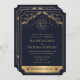 Adicione um toque de magia celestial ao seu grande dia! Estes convites de casamento góticos antigos apresentam um design de inspiração tarot com um sol radiante, lua, estrelas e nuvens em ouro contra um misterioso fundo azul marinho. Personalize-o para as suas necessidades. NOTA: O ouro apresentado nesta design NÃO é folha de alumínio real.
