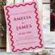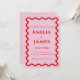 Este convite para o casamento do Red Retro Doodle cor-de-rosa mistura maravilhosamente a elegância contemporânea com as vibrações do retro boho. As ondas suaves e correntes numa paleta verde calmante criam uma atmosfera tranquila, mas na moda, perfeita para casais que apreciam designs inspirados na natureza com uma reviravolta moderna. A combinação de elementos da moda com o floco de vintage faz deste convite uma escolha única para o seu dia de casamento, oferecendo uma estética chic mas relaxada. Ideal para casais que buscam uma maneira memorável e moderna de convidar seus entes queridos para uma celebração cheia de amor, calor e encanto moderno.