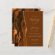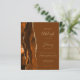 A borda esquerda deste elegante convite de casamento moderno apresenta uma laranja queimada e uma aquarela marrom aparada com falsa brilho dourado. O texto personalizável combina manuscrito dourado, copperplate e fontes itálicas em um fundo marrom noz. O lado inverso apresenta um design agate correspondente.