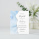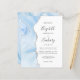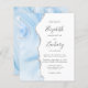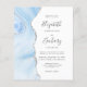 A borda esquerda deste elegante convite de casamento moderno apresenta uma cor azul-d-água pastel, cor-d-água, aparada com falso brilho prateado. O texto personalizável combina manuscrito, copperplate e fontes itálicas em cinzas de carvão em um fundo branco. O verso apresenta um design de agate dourado e azul-bebê correspondente.
