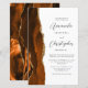 A borda esquerda deste elegante convite de casamento moderno apresenta uma cor de água laranja queimada, aparada com falsa brilho dourado. O texto personalizável combina o script de cinza de carvão e as fontes sans serif em um fundo branco. Um design de agate laranja queimado correspondente é exibido na parte traseira da placa.