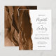 A borda esquerda deste elegante convite de casamento moderno apresenta uma mocha castanha de aquarela agata bordada com falsa brilho dourado. O texto personalizável combina a escrita manual de cinzas de carvão, as fontes em copperplate e itálico em um fundo branco. O verso apresenta um design de agata marrom e dourado correspondente.